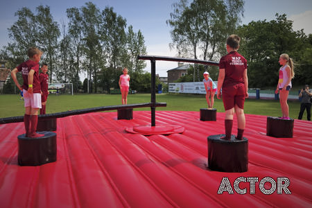 Eliminator Miotła to zdecydowanie najlepsze urządzenie do przeprowadzenia konkurencji zespołowych. Dmuchana Arena pomieści jednocześnie aż 6 osób, których zadaniem jest utrzymanie się jak najdłużej na wystających palach.